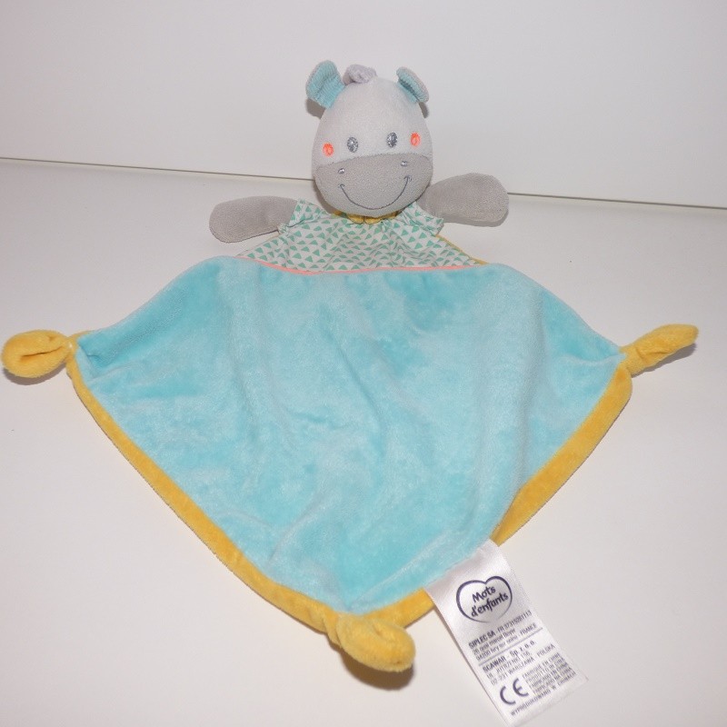 Doudou Vache Girafe Plate Bleu et Jaune Mots d Enfants