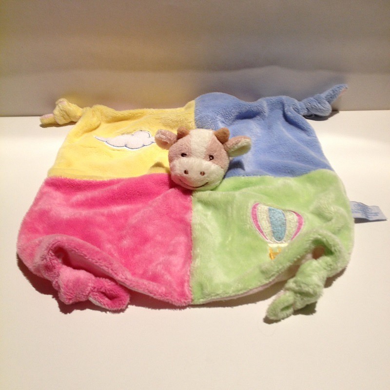 Doudou Vache Plate 4 Couleurs Broderie Montgolfière Gipsy