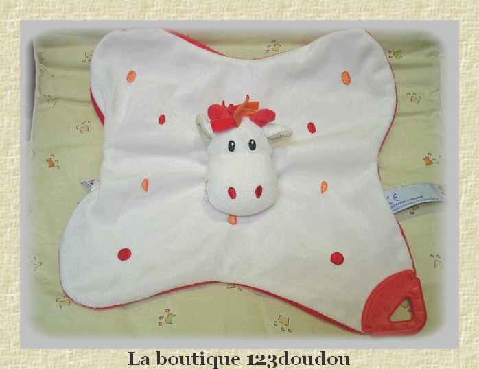 Doudou Vache PLate Blanche et Rouge P tit Bisous Aubert