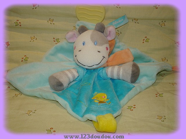 Doudou Vache Plate Bleue Bébé Rève