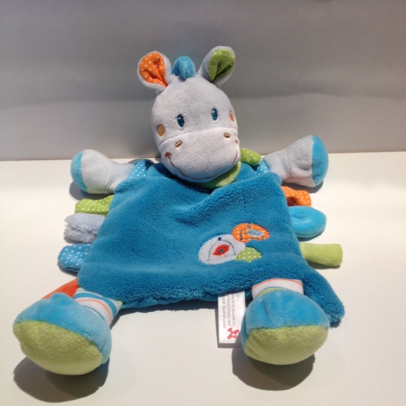 Doudou Vache Plate Bleue Broderie Oiseau Nicotoy