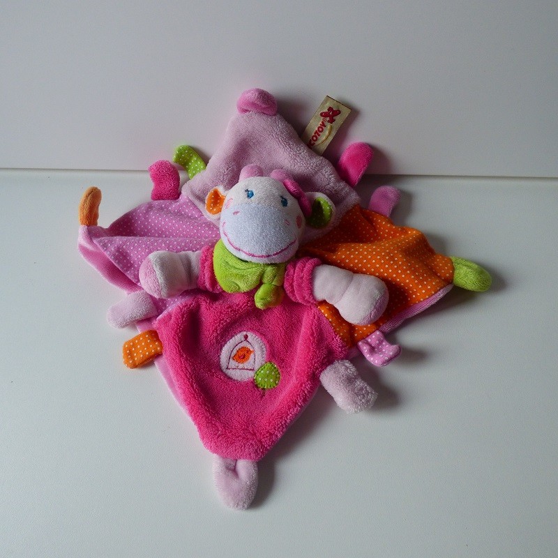 Doudou Vache Plate Rose Broderie Oiseau Nicotoy