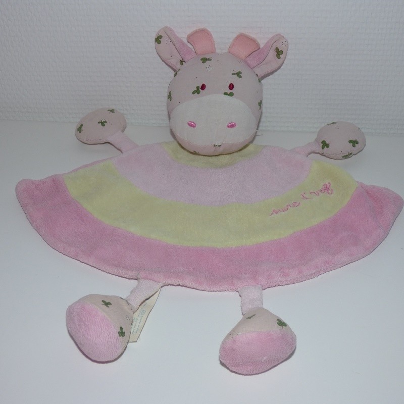 Doudou Vache Plate Rose et Vert Trèfles Sucre d Orge