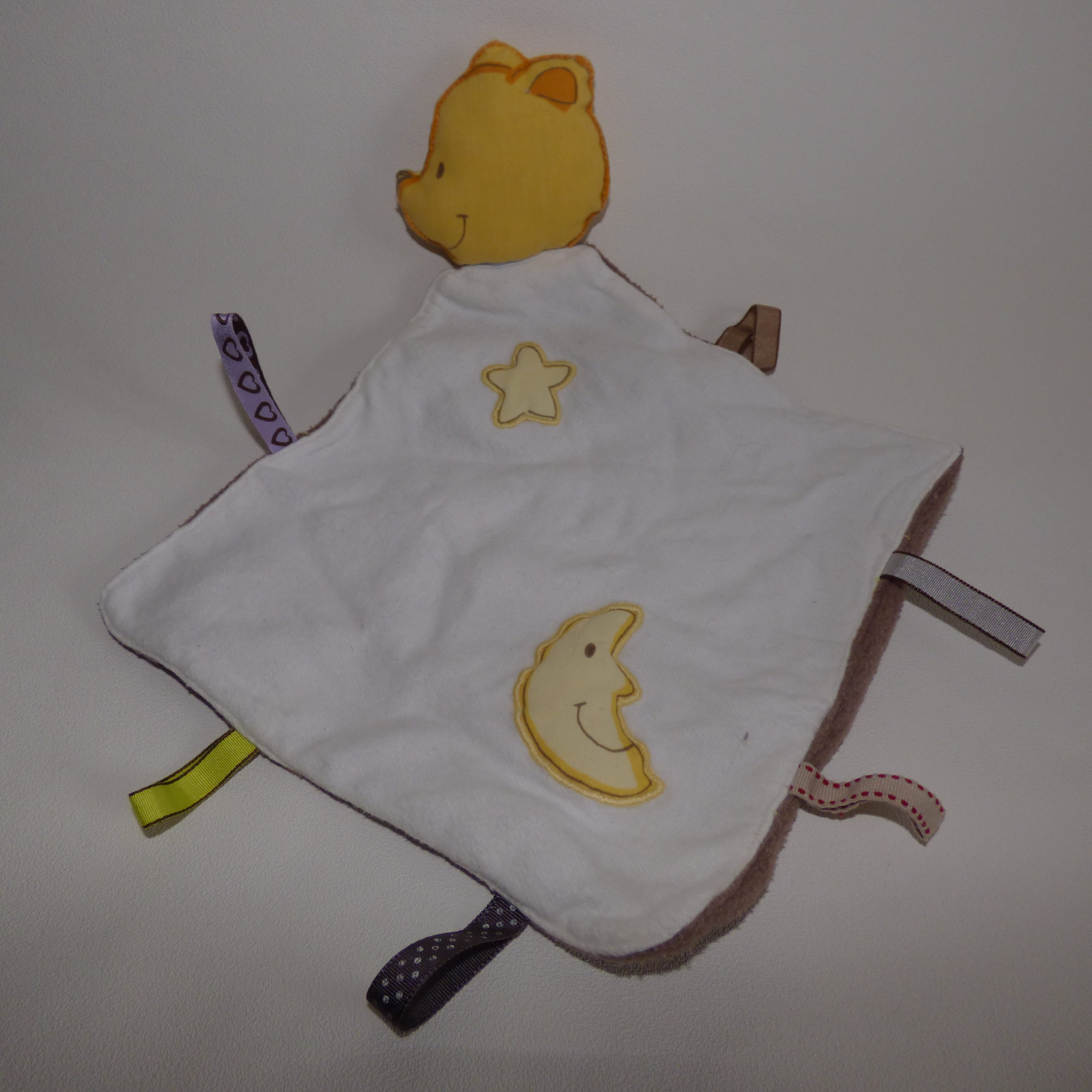 Un coté marron broderie étoiles, coté blanc broderie étoile et lune