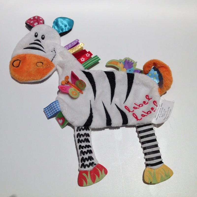 Doudou Zèbre Plat Blanc et Noir Label