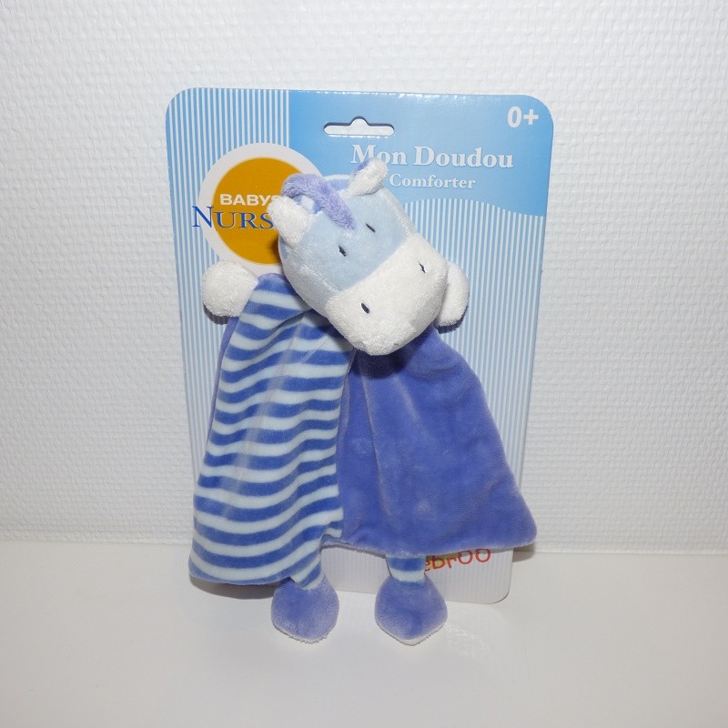 quantité de Doudou Zèbre Plat Bleu Rayé Babysun