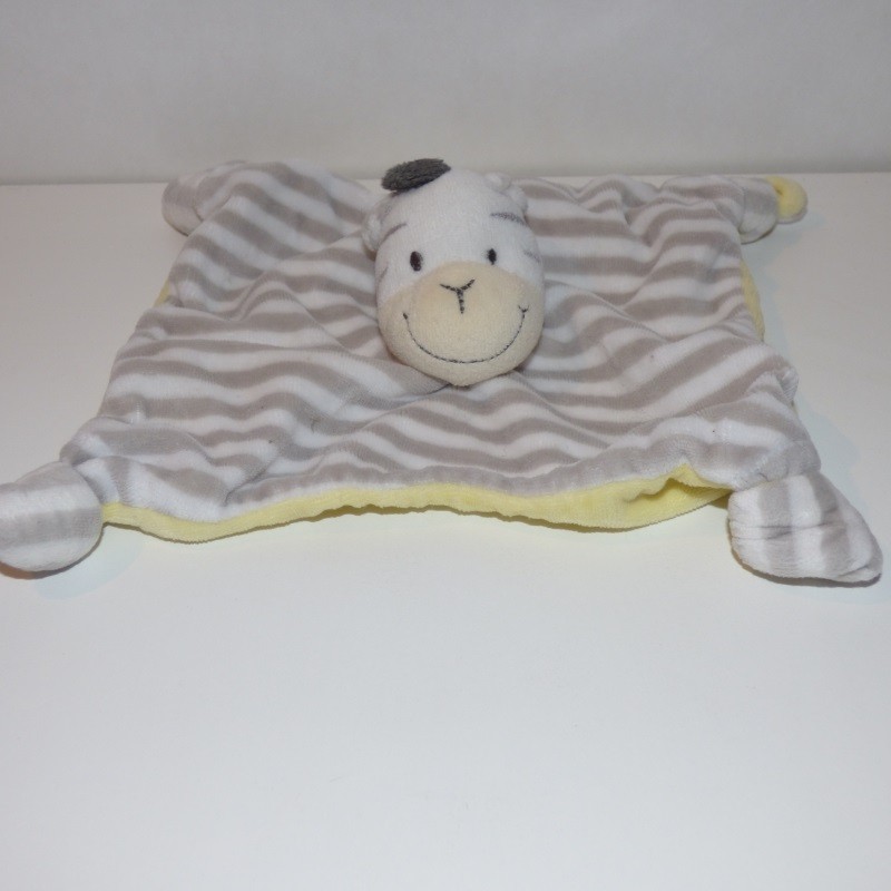 Doudou Zèbre Plat Rayé Gris et Jaune Babou