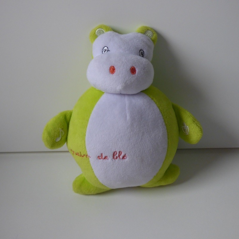 quantité de Sos Doudou Hippopotame Vert et Blanc Grain de Blé