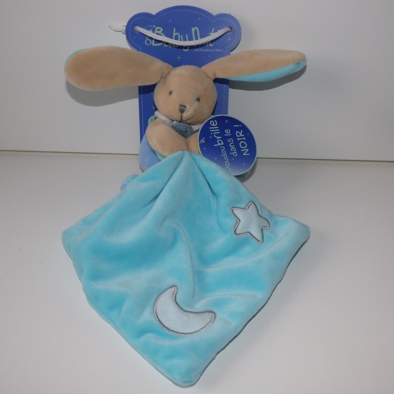 Sos Doudou Lapin Bleu Mouchoir Phosphorescent Babynat