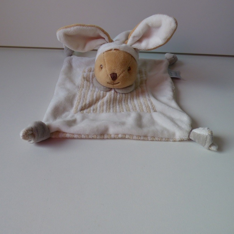 Sos Doudou Lapin Plat Beige et Blanc Mes petits Cailloux CMP