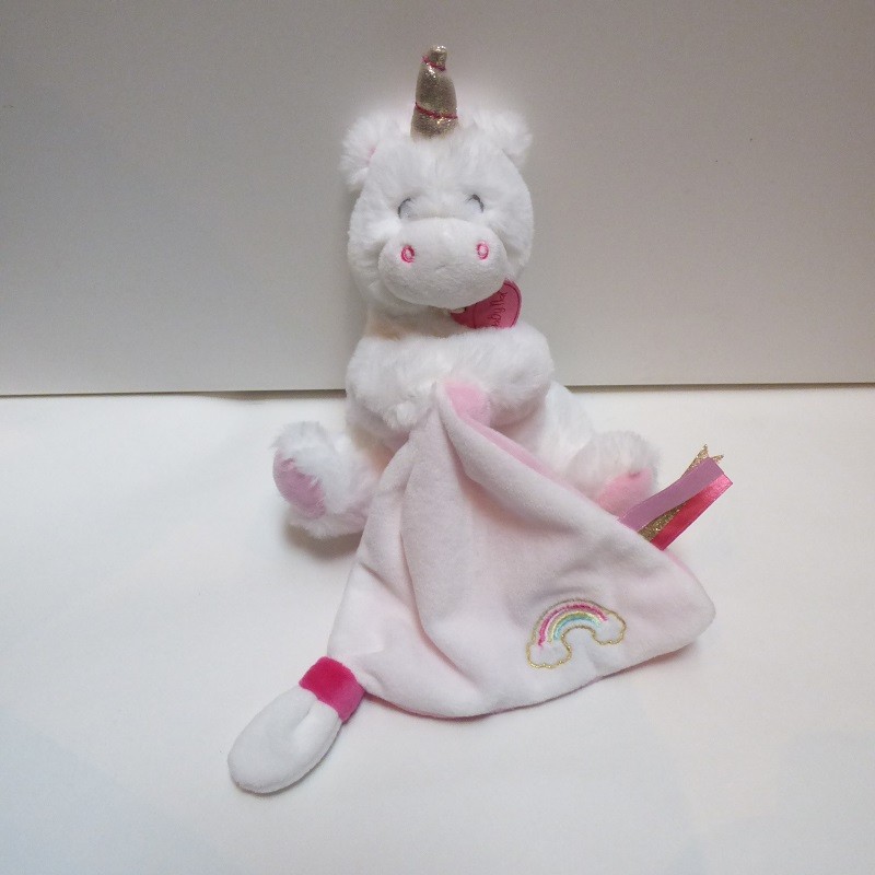 Sos Doudou Licorne Blanche et Rose Mouchoir Arc en Ciel Babynat