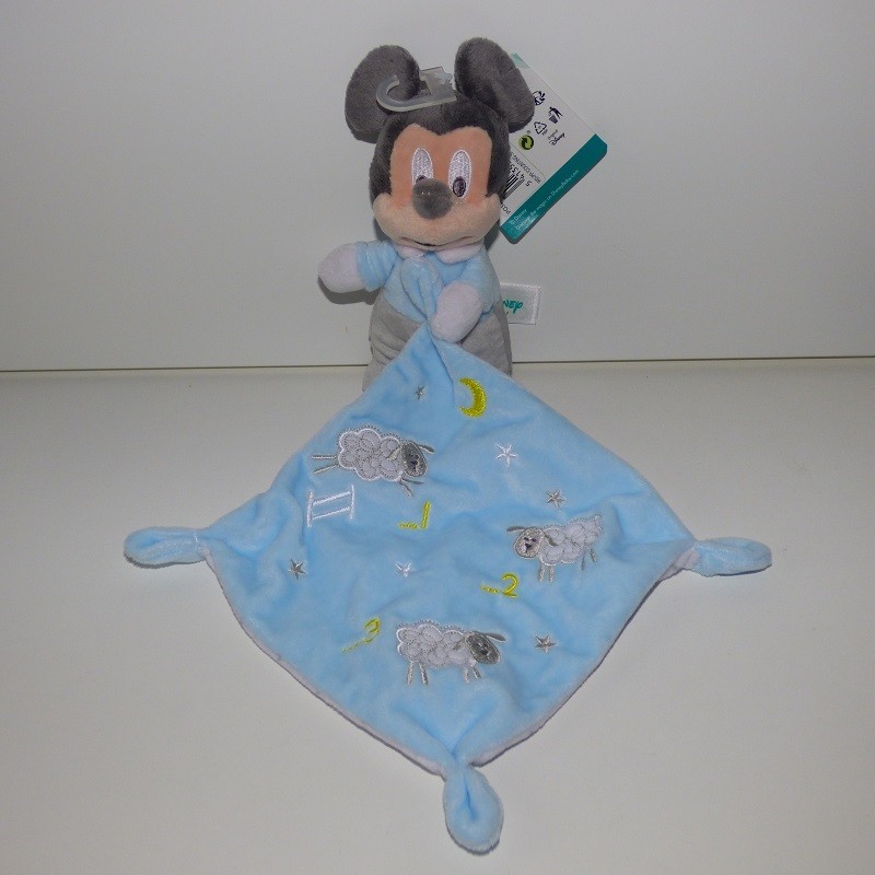 Sos Doudou Mickey Bleu et Gris Motif Mouton Mouchioir Disney