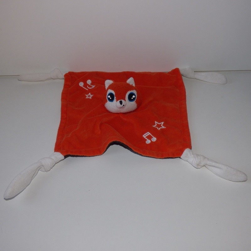Sos Doudou Renard Plat Orange Marron et Blanc Carré Blanc